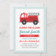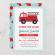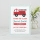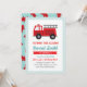 Invitación a la fiesta de cumpleaños con temática de camión de bomberos.