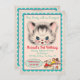 Invitación a la fiesta de cumpleaños de Kitty Cat, dulce y encantadora, con un gatito vintage y sus amigos en una sucursal con antecedentes antiguos (falsos). ¡Genial para un chico!