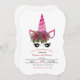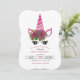 Una divertida invitación de cumpleaños con un unicornio rosa. <br/>() La tarjeta es fácil de personalizar con su redacción, fuente, color de fuente y elección de seis tipos de papel.<br/>() ¿No es exactamente lo que estás buscando? Todos nuestros productos pueden ser personalizados diseñados para satisfacer sus necesidades sin coste adicional.<br/>() Simplemente contáctenos a askcottonlamb@gmail.com<br/>() Productos de coordinación disponibles: