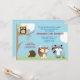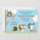 Invitación de cumpleaños de Forest Animals para tu fiesta de cumpleaños. Se configura como una invitación de tamaño 5x7 e incluye sobres blancos en blanco. Gráficos de búho, erizo, zorro y mapache ©Arte de Jess
