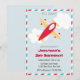 Invitación a la fiesta de cumpleaños con el tema del avión.