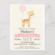 Girafa para bebés, jungla, animales del zoo, invitación a la fiesta de cumpleaños de los chicas temáticos del safari. Personalice esta atracción linda y retro con el nombre de su hijo. Diseño sencillo, sencillo y sencillo. Perfecto para el primer, primero, cumpleaños, niño pequeño, niños pequeños o mayores. Los colores son marrón y rosa pastel.