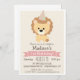 León bebé, jungla, animales del zoo, invitación a la fiesta de cumpleaños del chica temático safari. Personalice esta atracción linda y retro con el nombre de su hijo. Diseño sencillo, sencillo y sencillo. Perfecto para el primer, primero, cumpleaños, niño pequeño, niños pequeños o mayores. Los colores son marrón y rosa pastel.