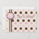 Esta invitación a la fiesta de cumpleaños de las niñas 5x7 tiene puntos de polka rosa y marrón con un borde de cinta marrón y crema. Hay una flor hecha de "papel" floral encima de la cinta. Al fondo, hay una frontera polkadot con un centro crema con algunas flores. Puede personalizar fácilmente la información de su fiesta.