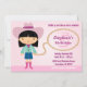 Esta invitación a la fiesta de cumpleaños de una vaquera rosa, 5x7, tiene una vaquera de pelo negro con una lazo. Puede personalizar fácilmente la información de su fiesta sobre la derecha. Gráficos de Stockberry Studio en Mygrafico