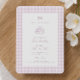 Celebre con estilo dulce con la invitación a la fiesta de cumpleaños de este chica de gingham rosa. Con un bonito borde a cuadros pastel, una elegante tipografía y un bonito ilustracion de pasteles dibujado a mano, este diseño es perfecto para un día especial para una niña. Personalizable total con los detalles de su evento, es ideal para tercios cumpleaños, fiestas de niños pequeños y otras celebraciones de hitos. El original diseño de gingham le da un toque clásico, haciendo de esta invitación un placer para sus huéspedes.
