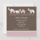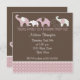 Esta invitación de cumpleaños tiene una fila de elefantes parados encima de las palabras "Estás invitado a una fiesta de cumpleaños para" y luego añades tu información con la herramienta zazzle. Puede agregar un mensaje en la parte posterior de la tarjeta o quitar. Sobre viene en el tamaño exacto de esta invitación.