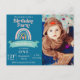 Tarjeta de Invitación de Cumpleaños para el 1er Aniversario con Foto de Arcoíris Divertida | Invitación para Fiesta de Hito Infantil. Celebra el gran hito de tu pequeño con esta Tarjeta de Invitación de Cumpleaños para el 1er Aniversario con Foto de Arcoíris Divertida. Diseñada con arcoíris pastel alegres, nubes esponjosas y detalles juguetones, esta adorable tarjeta es perfecta para la fiesta del primer cumpleaños de un niño o niña.