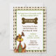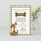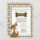 Celebra el cumpleaños de tu perro con una explosión de fiesta mascota. Esta tierna invitación tiene un cachorro con corbata de color oliva, sosteniendo su oreja hacia arriba. Invitar a todos los compañeros de juego y amigos de tu cachorro. Añade los detalles de tu fiesta para la invitación perfecta de cumpleaños. El hueso marrón tiene las palabras Fiesta Mascota.
