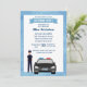 Invitación de cumpleaños para un oficial de policía masculino. El diseño tiene un coche de policía y un oficial de policía masculino con las palabras estás invitado a una fiesta de cumpleaños. Fácil de personalizar con los detalles de tu fiesta. Agrega el nombre del departamento en las etiquetas del automóvil.