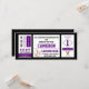 ¡Una invitación divertida al estilo de las entradas perfecta para tu próxima fiesta de béisbol! Este boleto de béisbol es morado y negro para tu equipo favorito.