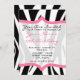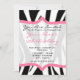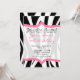 Invitación de cumpleaños con un fondo de impresión de cebra en el frente y en la parte posterior. En la parte delantera hay un ilustracion de quequito rosa y blanco dentro de un marco rosa. Personalice la parte trasera con detalles de su evento.