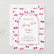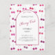 Curva y acuarela moderna Invitación a la fiesta de cumpleaños Cherry First. La parte posterior tiene un par de cerezas a juego para conseguir algo más de dulzura. Personalizar el texto para que se adapte a tu celebración. Arte original de Nic Squirrell