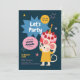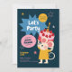 Celebra el día especial de tu hijo con esta adorable invitación de primer cumpleaños con un alegre ratón sosteniendo una torta de fresa. El diseño, luminoso y lúdico, lo convierte en el lugar ideal para disfrutar de una fiesta divertida y amigable con los niños.