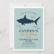 Invitación azul y naranja de la fiesta de cumpleaños del tiburón.