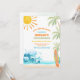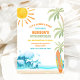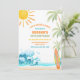 Crea olas con esta divertida y tropical invitación de cumpleaños con tema de playa. Con un sol brillante, palmeras, olas del océano y un diseño de tabla de surf, esta tarjeta establece el tono perfecto para una celebración junto al mar. Ideal para cumpleaños de niños, fiestas de verano o reuniones tropicales, combina colores vibrantes con un ambiente costero juguetón. Personaliza con los detalles de tu evento e impresiona a tus invitados con una invitación elegante y festiva que capture el espíritu de una aventura en la playa.
