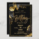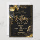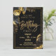 Celebre su cumpleaños con estilo con esta invitación de lujo con acentos de Relieve metalizado dorado y elegantes hojas tropicales en negro y oro. Perfecto para un fiesta sofisticado y glamuroso. Personalizar la invitación con tu nombre, detalles del fiesta y un mensaje personalizado.