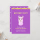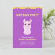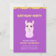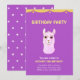 Tarjeta de invitación para fiesta de cumpleaños número 13. La tarjeta de cumpleaños tiene una linda llama rosa sobre fondo ultra violeta. Hay un patrón de estrellas en la parte posterior. El texto está listo para ser personalizado. La palabra llama significa varias cosas.