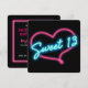 Invitación a la fiesta de cumpleaños número 13 SWEET con corazón de brillo de neón. Personalice la parte posterior como desee.