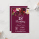 Invitación a la fiesta de cumpleaños número 18 de Burgundy Floral para mujeres. Invitación a la fiesta de cumpleaños roja de Borgoña. Flor floral color burdeos. 13a 15a 16a 18a 20a 30a 40a 50a 60a 70a 80a 90a 100a.