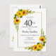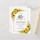 Bonito floral de girasol amarillo 40ª invitación de cumpleaños. Las peonías amarillas y las margaritas blancas se mezclan con los girasoles. Un marco dorado rectangular le da un ambiente elegante. Muy fácil de personalizar. La parte trasera tiene un ramo de girasol. Esto es perfecto para una celebración de cumpleaños de verano. Este artículo forma parte de la colección Yellow Sunflower White Daisy.