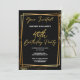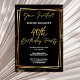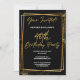 Establece el escenario para una divertida y fabulosa invitación para una fiesta de cumpleaños número 40 de oro y negro. Diseñada con un marco dorado sobre negro con acentos de confeti de color dorado. El texto incluye: ¡Estás invitado!, El Nombre, Fiesta de cumpleaños número 40, La Fecha, Nombre y dirección del lugar, y el nombre y detalles de contacto para RSVP. El reverso tiene un fondo negro a juego. Para personalizar, simplemente inserta tu texto en nuestra plantilla fácil, reemplazando la muestra. Esta invitación está disponible tanto para imprimir como para descargar.