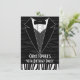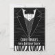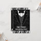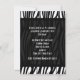 Elegante invitación a la fiesta de cumpleaños número 50 para los hombres, con un bonito fondo de rayas de cebra en blanco y negro con un elegante esmoquin y diseño de bowtie. El diseño contemporáneo elegante es perfecto para una cena formal personalizado o para una velada bailarina cincuenta para él.