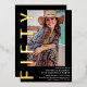 Añade un poco de lujo a este diseño popular añadiendo letras de Relieve metalizado dorado. Invitación de cumpleaños 50 - El diseño presenta un fondo negro que se puede cambiar a cualquier color, una fotografía de retrato, el texto 'CINCUENTA' en negrita con letras de Relieve metalizado de oro real y una elegante plantilla de fiesta de cumpleaños que se puede personalizar fácilmente. Elegante, moderno y perfecto para cualquier edad.