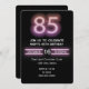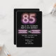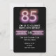 Números de neón rosados brillantes sobre fondo negro para la fiesta de cumpleaños número 85.