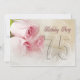 Una hermosa y delicada imagen de un rosa en tonos suaves de color rosa. Una encantadora invitación para la fiesta de cumpleaños. Cambiar la espalda a los detalles de su propio fiesta