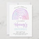 La invitación tiene un arcoíris colorido, en tonos morados, azules y rosas. Ideal para cualquier edad.