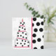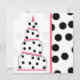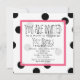 Invitación a una fiesta de cumpleaños con un esquema de color rosa, negro y blanco. El frontal presenta un ilustracion de un pastel de cumpleaños con cuatro capas redondeadas fuera de las centradas. Cada capa es rosa claro en la parte superior con líneas rosadas y negras calientes en el centro y polka negro sobre blanco en el fondo. Velas arriba. El fondo es solo puntos rosados de polka. La imagen lateral coincide con la parte inferior del pastel. La imagen trasera coincide con el lado. Personaliza con detalles de tu evento.