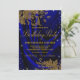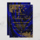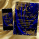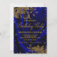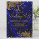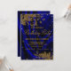 Invitación de las mujeres a la fiesta de cumpleaños azul real y oro con elegantes remolinos purpurinas de oro sobre un hermoso fondo de satén azul real. Esta invitación de cumpleaños real azul y oro se personaliza fácilmente con los detalles de tu evento. El texto de la "fiesta de cumpleaños" no se puede cambiar.