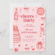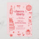 Celebra tu gran hito con estilo con esta divertida invitación de cumpleaños "Saludos a los Treinta". Con un fondo rosa lúdico, botella de champán, pasteles y doodles de bolas de disco, esta plantilla editable es perfecta para anunciar su 30 cumpleaños de una manera moderna y festiva. Personalice con su nombre, los detalles del fiesta y la información de RSVP para un diseño tan único como su celebración. Ideal para cumpleaños, fiestas adultos y reuniones glamorosas.