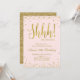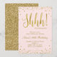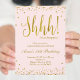 Los confetti de oro falso salpican la invitación rosa de la fiesta con un diseño brillante para la fiesta sorpresa de cumpleaños. Perfecto para el cumpleaños moderno.