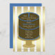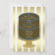 Esta elegante invitación a la fiesta de cumpleaños 50 Cake Surprise incluye una torta de chocolate con acentos azules sobre un fondo dorado y blanco. Una gran invitación para una sorpresa de cumpleaños número 50. Copyright henishouseofpaper