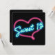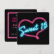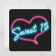 Invitación a la fiesta de cumpleaños SWEET 15 con corazón de brillo de neón. Personalice la parte posterior como desee.