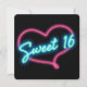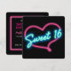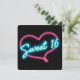 Invitación a la fiesta de cumpleaños SWEET 16 con corazón de brillo de neón. Personalice la parte posterior como desee.