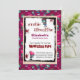 Una invitación fresca y divertida para la fiesta de cumpleaños con un tema zombie. Diseñado con niños y chicas zombie lindos y escalofriantes. Los chicas tienen el pelo rosado y los chicos están usando ropa hecha jirones. Las manchas rojas de pintura se esparcen alrededor para producir un efecto de mancha de sangre espeluznante.