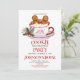 Invitación editable para fiesta de decoración de galletas de Navidad, fiesta de cacao caliente, chocolate caliente con taza de cacao de hombre de jengibre blanca