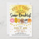Invitación a la fiesta del evento de desayuno para estudiantes de último año. Perfecto para dar inicio al último año y celebrar a la próxima clase graduada.