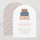 Una pila de maletas coloridas se sienta en la parte superior de esta invitación caprichosa para una fiesta de despedida. Debajo de la ilustración del equipaje hay espacio para el nombre del invitado de honor y los detalles de la fiesta. La parte posterior de la tarjeta presenta un patrón de franjas diagonales coordinadas. ¡Esta invitación es perfecta para cualquiera que esté a punto de embarcarse en una nueva aventura!