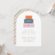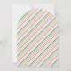 Una pila de maletas coloridas se encuentra en la parte superior de esta caprichosa invitación a la fiesta de despedida. Debajo de la ilustración del equipaje hay espacio para el nombre del invitado de honor y los detalles de la fiesta. La parte trasera de la tarjeta presenta un patrón de rayas diagonales coordinadas. Esta invitación es perfecta para cualquiera que esté a punto de embarcarse en una nueva aventura.
