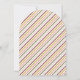 Una pila de maletas coloridas se sienta en la parte superior de esta caprichosa invitación a una fiesta de despedida. Debajo de la ilustración del equipaje hay espacio para el nombre del invitado de honor y los detalles de la fiesta. La parte posterior de la tarjeta presenta un patrón de franjas diagonales coordinadas. ¡Esta invitación es perfecta para cualquiera que esté a punto de embarcarse en una nueva aventura!