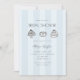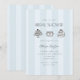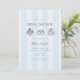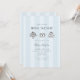 Celebre a la futura novia con estilo atemporal con esta elegante invitación de boda a rayas azules y coqueta. Con rayas verticales azules suaves, delicadas tartas de boda dibujadas a mano y tipografía de letra script romántica, esta invitación es perfecta para un tema de boda femenino y chic.