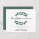La elegante inserción de la invitación de boda botánica les hace saber a los invitados que la celebración continuará hasta la noche. La invitación a la fiesta posterior presenta exuberantes hojas de eucalipto verdes ilustradas en acuarela, enmarcando "la celebración continúa" en elegante escritura a mano caligráfica. Personalice con los detalles de su fiesta posterior de boda en la parte inferior. El tamaño pequeño cabe en los sobres de su invitación de boda como una inserción adjunta, o se puede enviar por correo por separado con los sobres incluidos.