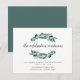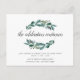 La elegante inserción de la invitación de boda botánica les hace saber a los invitados que la celebración continuará hasta la noche. La invitación de la fiesta posterior presenta exuberantes hojas de eucalipto verdes ilustradas en acuarela, enmarcando "la celebración continúa" en elegante letra de caligrafía manuscrita. Personalice con los detalles de la fiesta posterior de su boda a lo largo de la parte inferior. El tamaño pequeño cabe en los sobres de su invitación de boda como una inserción adjunta, o se puede enviar por correo por separado con los sobres incluidos.