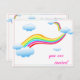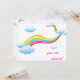Esta divertida y dulce invitación es una buena manera de invitar a tus amigos a tu fiesta de cumpleaños. El frente es un blanco brillante con un arcoiris brillante que casi parece un deslizamiento en el cielo. En la parte delantera dice "Estás invitado" y los detalles de tu fiesta están en la parte trasera.