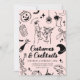 Fije el tono para una elegante y espeluznante fiesta de Halloween para adultos con esta invitación de fiesta de disfraces y cócteles negros en rosa. Con gafas de martini, esqueletos de baile, fantasmas y ilustraciones de estilo vintage, esta elegante plantilla es perfecta para reuniones de Halloween con un toque de clase.