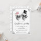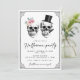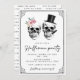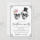 Invitación a la fiesta de disfraces de Halloween, tema victoriano. Mostración de la pareja de cráneos con flores, gorra y puros.